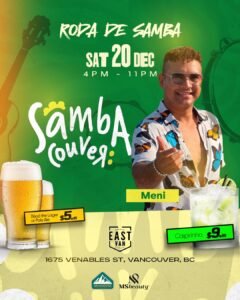 Neste sábado, o Sambacouver vai fechar o ano de 2025 com chave de ouro — sambando, sorrindo, cantando alto e celebrando como tem que ser: do jeitinho que a gente merece!