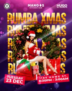 This Tuesday, December 23rd, Mangos Kitchen Bar lights up with the most energetic and festive Christmas celebration in Vancouver — Rumba Xmas!